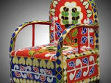 sofa chair for sale manila Exquisitely crafted Nigerian chair in vivid primary colors on white background.