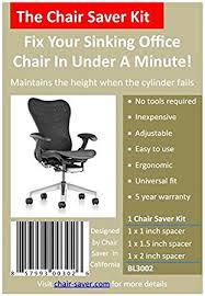 Ships from and sold by Conusant. New (1) from $24.95 The Chair Saver Kit - Fix Your Sinking Office Chair In Under A Minute! Pretty much every adjustable office chair cylinder will let you down after a few years of use. This happened to me when my expensive ergonomic chair started sinking 4 years ago. I thought there had to be a better, easier, more cost effective way to fix a sinking office chair other than throw it away in a landfill and buy a new one. Or worse yet, try to install a new non-returnable cylinder using special pullers, pipe wrenches and rubber mallets - and don't forget the bearing kit. Mess up and you have a ruined cylinder and a chair going to the trash. Cylinder replacements work well if you have a dedicated facilities manager for a large site, but a lot of small to medium size business and home offices simply don't have full time staff that know how to repair office chairs. Now you can stop that sinking feeling with a Chair Saver Kit. Designed and assembled in California, the kit fits just about any adjustable office chair made in the last 20 years.
