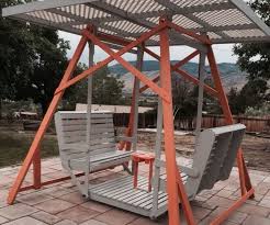 Perfect for an afternoon coffee in the company of loved ones. This feeder for squirrels, it also sensational way to provide them with fun. Cute execution and charming colors make the whole is very pretty. It has a practical skewers corn on the cob. Excellent especially during the winter. With the countered seat slats for your maximum comfort and the naturally rot-resistant cedar construction this is the piece to grace your outdoor setting, offering you a great place to sit and enjoy the nice, warm weather. A simple bench flames. It is very comfortable and elegant. The bench is minimalist and by it was very impressive.It made of light wood.It is attached chains. Perfect for a lazy afternoon. Check it in your garden. This kind of chair is a very original product that not only provides comfort, but also looks very stylish. It is a swing chair that has got a steel frame and a PE wicker sitting space. It is perfect for an outdoor use. It is a brown swing in the garden.