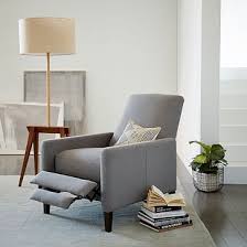 Orange chair with metal frame in great condition. Had in the family forever. Scroll to Previous Item Scroll to Next Item Not your grandpa's recliner. Inspired by classic French club chairs, the Sedgwick's simple silhouette features slim arms and a push-back reclining mechanism. 29"w x 36.5"d x 39"h. Solid wood frame and legs with Chocolate-stained finish. Hidden steel pushback mechanism to 3 settings. Overall product dimensions: 29"w x 36.5"d x 39"h. Interior seat width: 24". Depth of chair when fully reclined: 64." Distance chair must be from wall when fully reclined: 21". Diagonal depth (including legs): 54". Clearance under recliner: 6". Make sure it fits! See our guide on measuring for delivery. Number of boxes: 1. Shipping package: 47"w x 30"d x 26"h. Package weight: 50 lbs. Assembled upon delivery via White Glove Service. Periodic dusting and vacuuming is recommended for normal maintenance.