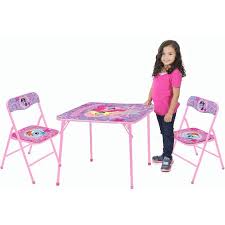 Sign In Reviews Customer reviews see all 725 reviews Write a review i i i i i i i i i i i i i i i i Shared by Policies & Plans Gifting plansAbout this item Folds easily for storage Safety locking mechanism for extra protection Easy to clean surface About this item disclaimer Bring back the toys of yesteryear with the My Little Pony Table and Chair Set. Inspired by the My Little Pony franchise, the table and chairs have a large colorful image of your favorite ponies to impress every My Little Pony fan. Your kid will undoubtedly love using this table and chair set for games, activities and more. This table and chair set features a special safety lock mechanism, so not only does it rank high in comfort, but also in safety. Featuring tubular steel construction, the table has a wooden vinyl top, ensuring durability. It conveniently folds when not in use to save space. This My Little Pony Table and Chair Set can be conveniently washed clean, which means maintenance is effortless.